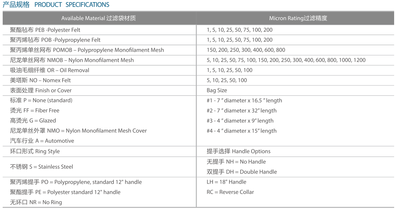 產品編號 | 過濾袋 |
